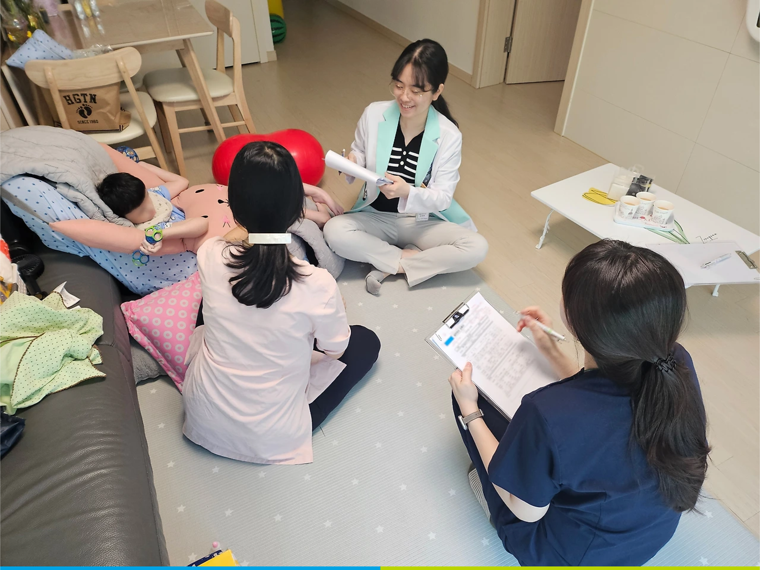 병원에서는 아이가 치료를 받는 동안, 그 아이가 어떤 환경에서 생활하는지는 사실 알기가 어려워요. 집의 구조가 어떤지, 어떤 운동기구가 있는지 등 어떤 공간에서 생활하는지 알 수 없죠. 그래서 막상 가정에 방문해 보면 놀랄 때가 많습니다. 치료에 사용할만한 도구가 전혀 없는 집도 있고, 반면 짐볼이나 스트레칭 밴드 등 재활에 도움이 되는 기구가 잘 갖춰진 집도 있죠. 이처럼 가정마다 환경이 너무 다르기 때문에, 할 수 있는 재활의 방식도 달라집니다. 방문 재활은 이러한 현실적인 차이를 직접 보고 파악할 수 있다는 점에서 큰 의미가 있습니다. 예를 들어, 집에 이미 있는 도구들을 활용해 아이에게 맞는 운동 방법을 알려주면, 보호자도 ‘우리 집에서도 할 수 있구나’라는 자신감을 얻게 됩니다. 그렇게 되면 자연스럽게 보호자의 참여도가 높아지고, 재활의 지속성도 커지게 되죠.