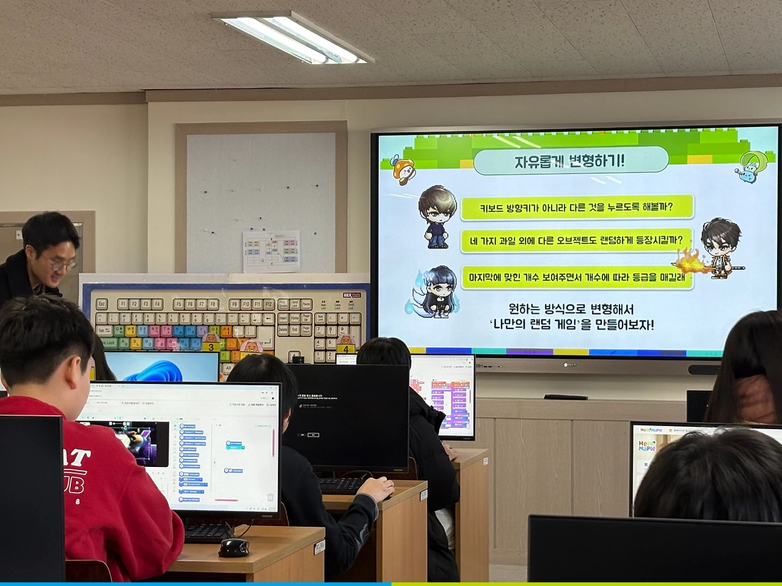 실제로 처음에는 "이 게임 어떻게 만들어요?"처럼 추상적인 질문을 하던 아이들이, 여러 차시의 헬로메이플 프로그램을 경험한 후 "선생님, 여기에 이 기능을 넣고 싶은데 어떻게 해야 해요?"와 같이 해결하고 싶은 문제를 구체적으로 짚어내기 시작했단다.