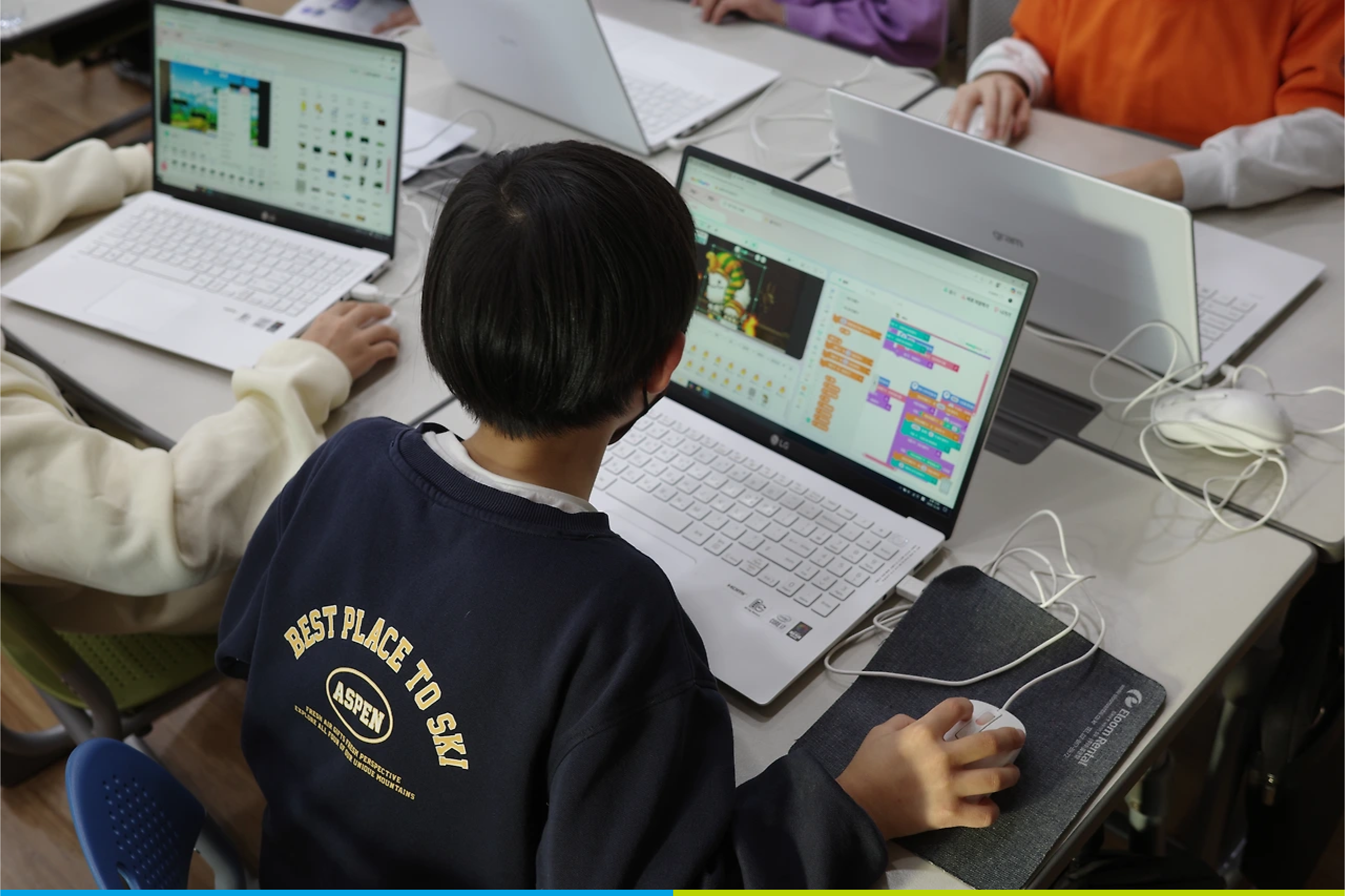 한 수업은 5학년 한학급을 대상으로 정규 수업 시간에, 다른 수업은 지역아동센터에서 여러 학년을 대상으로 방과 후에 진행되어 수업 분위기는 사뭇 달랐지만, 두 수업 모두 모든 학생들이 수업에 적극적으로 참여하고 있다는 점은 같았다. 게임을 만들며 코딩을 배우는 헬로메이플 플랫폼의 특성 덕분도 있겠지만, 한 수업 당 4-5명의 멘토가 투입되어 멘토 1명당 4명 남짓의 멘티를 전담 지도해 가능한 일인 듯 했다. 몇 개월째 수업을 진행하며 멘토들은 멘티의 이름은 물론 성향까지 기억하며 맞춤 지도를 하고 있었으며 덕분에 소외되는 학생 없이 모두가 코딩과 친해지고 있었다.